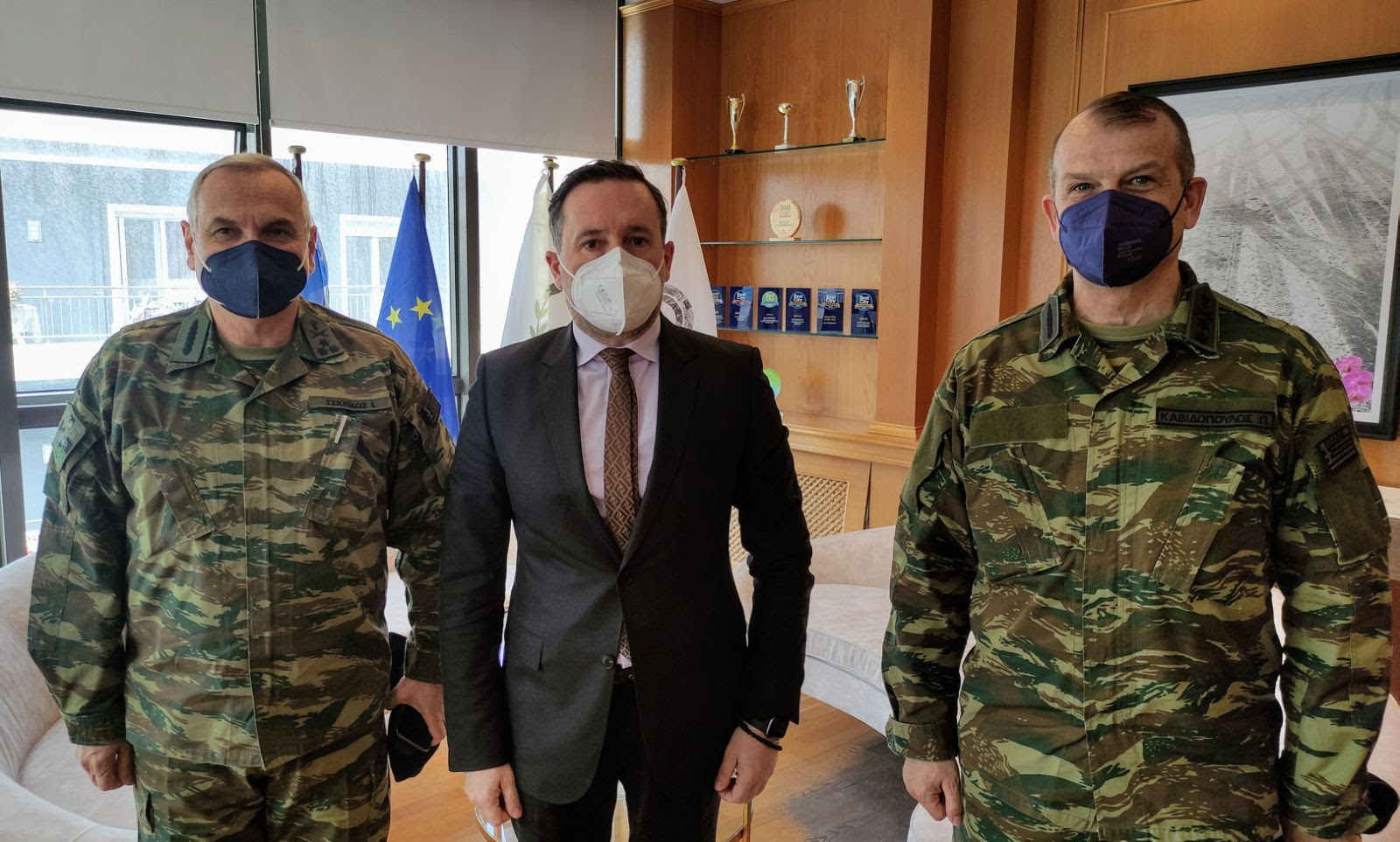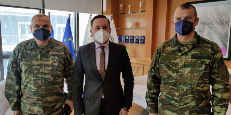 Τον Δήμαρχο Αλεξανδρούπολης Γιάννη Ζαμπούκη επισκέφτηκε σήμερα στο γραφείο του ο νέος Διοικητής του Δ’ Σώματος Στρατού, Αντιστράτηγος Ιωάννης Τσιόπλος συνοδευόμενος από τον Διοικητή της 12ης Μεραρχίας Πεζικού “ΕΒΡΟΣ”, Υποστράτηγο Παναγιώτη Καβιδόπουλο.