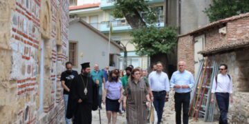 Στη συνέχεια η Λίνα Μενδώνη και ο Χρήστος Μέτιος, μαζί με τον Σεβασμιώτατο Μητροπολίτη Μαρωνείας και Κομοτηνής κ. Παντελεήμονα και το Δήμαρχο Κομοτηνής κ. Γιάννη Γκαράνη, επισκέφθηκαν το Μητροπολιτικό Ναό Κοιμήσεως της Θεοτόκου, το Βυζαντινό Φρούριο και το Εκκλησιαστικό Μουσείο Ιμαρέτ, και ενημερώθηκαν για την πορεία των εργασιών που έχουν πραγματοποιηθεί μέχρι στιγμής με χρηματοδότηση από το ΕΣΠΑ της Περιφέρειας.
