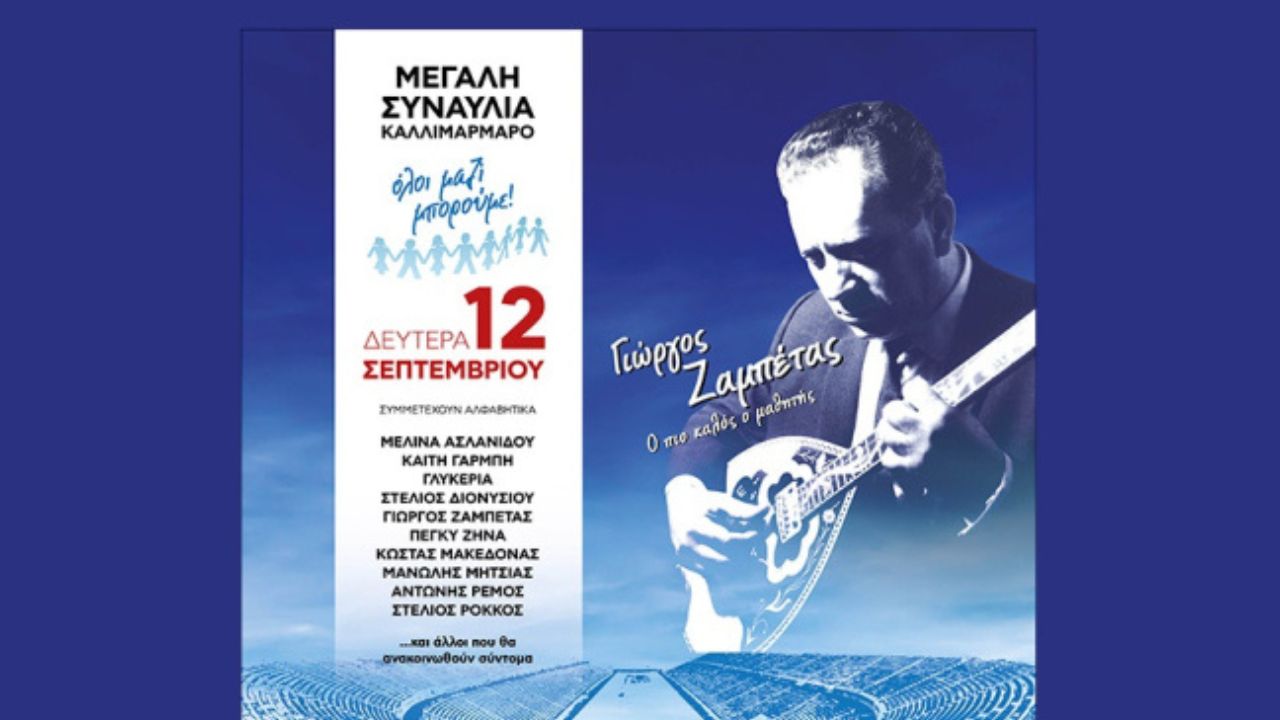Το ΟΛΟΙ ΜΑΖΙ ΜΠΟΡΟΥΜΕ παρουσιάζει τη Δευτέρα 12 Σεπτεμβρίου, στο Καλλιμάρμαρο Παναθηναϊκό Στάδιο τη μεγάλη του συναυλία «ΓΙΩΡΓΟΣ ΖΑΜΠΕΤΑΣ. Ο ΠΙΟ ΚΑΛΟΣ Ο ΜΑΘΗΤΗΣ».