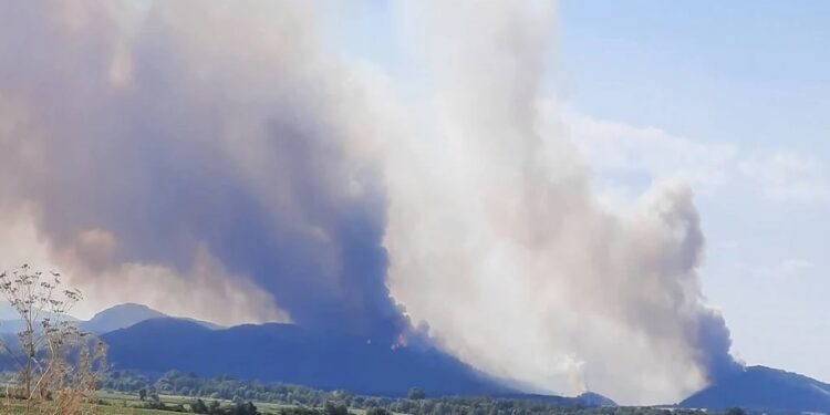 Ανεξέλεγκτη μαίνεται η μεγάλη φωτιά που ξέσπασε νωρίτερα σήμερα σε αγροτοδασική έκταση πλησίον του φράγματος της Λύρας στο Σουφλί του Έβρου.