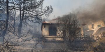 Σε ύφεση είναι από νωρίς το μεσημέρι η μεγάλη δασική πυρκαγιά στη νότια Λέσβο που μέχρι το πρωί σήμερα Πέμπτη μαίνονταν μεταξύ των χωριών Βρίσα και Πολυχνίτος.