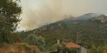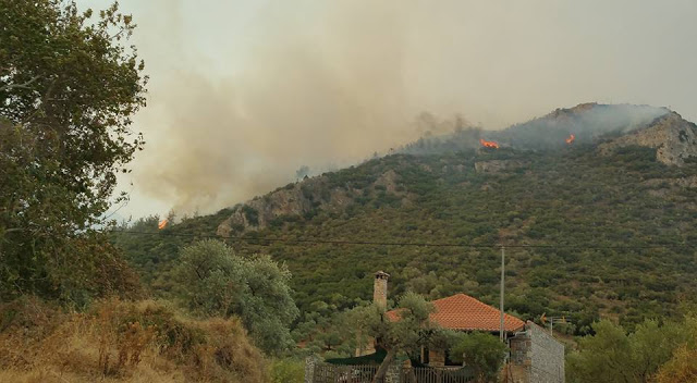 Σύμφωνα με την Πυροσβεστική Υπηρεσία, η πυρκαγιά καίει δασική έκταση, η οποία είναι δύσβατη, ενώ δεν απειλούνται κατοικημένες περιοχές ή κατοικίες.