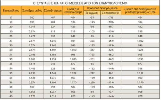 Το ένθετο «Ασφάλιση και Συντάξεις» της εφημερίδας «Ελεύθερος Τύπος» αποκαλύπτει τις νέες συντάξεις μετά τον επανυπολογισμό, μέσα από τους πίνακες που έχει πάρει το υπουργείο Εργασίας για συνταξιούχους του ΙΚΑ και του ΟΑΕΕ (από το μηχανογραφικό σύστημα του ΕΦΚΑ) και με ενδεικτικά ποσά που έχουν βγει για λογαριασμό του υπουργείου Οικονομικών από το μηχανογραφικό σύστημα των συντάξεων Δημοσίου.