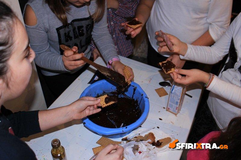 Την Κυριακή 10 Δεκεμβρίου η Ελένη Καλογεροπούλου και Έλλη Τριανταφύλλου σ’ ένα εργαστήρι για παιδιά ετοίμασαν χριστουγεννιάτικες σοκολατένιες λιχουδιές και έφτιαξαν χριστουγεννιάτικα στολίδια από ζυμάρι. Επίσης ο κ. Μαυροειδής μίλησε στα παιδιά για το ελαιόλαδο και την διατροφική του αξία. Παράλληλα έφερε ένα καινούργιο και άγνωστο προϊόν στα παιδιά «το χαρούπι» με το οποίο έφτιαξαν ένα υγιεινό πρωινό γεύμα. Φτιάξανε ακόμη σοκολατένιες λιχουδιές και στολίδια από ζυμάρι.