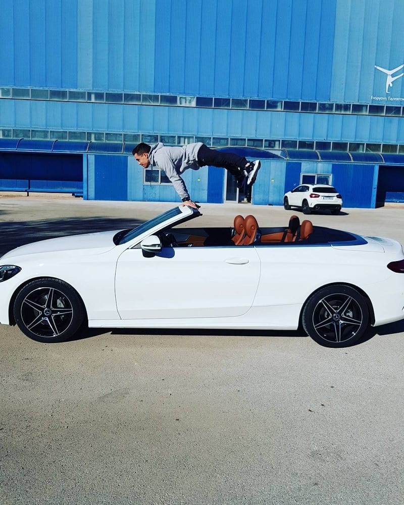 Για παράδειγμα πάνω στο παρμπρίζ μιας πανάκριβης λευκής κάμπριο Mercedes. Ο άρχοντας τον κρίκων, του οποίου χορηγός είναι η Stoiximan.gr , ανέβασε στο προφίλ του στο instagram μια φωτογραφία στην οποία κάνει μια γυμναστική άσκηση πάνω στο αυτοκίνητο!