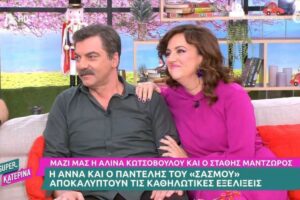 Η Αλίνα Κωτσοβούλου και ο Στάθης Μάντζωρος, η Άννα και ο Παντελής του Σασμού σε μία αποκλειστική συνέντευξη στην εκπομπή Super Κατερίνα δίνουν spoiler για τη σειρά ενώ αποκαλύπτουν τι θα συμβεί στην σχέση τους. Για ποιο λόγο θα διχαστεί το ανδρόγυνο;