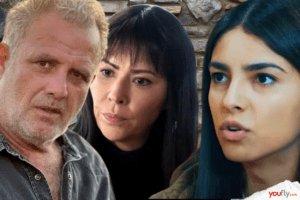 Μόλις την βλέπει όπως θα δούμε στη συνέχεια της σειράς «Η Γη της Ελιάς», ξαφνιάζεται και η Αρετή του υπενθυμίζει ότι υποσχέθηκαν να φέρονται φιλικά και εκείνος κάνει την καρδιά του πέτρα, πιάνονται αγκαζέ και περπατάνε μαζί, ενώ η Βασιλική βλέποντας αυτή τη σκηνή μένει έκπληκτη.
