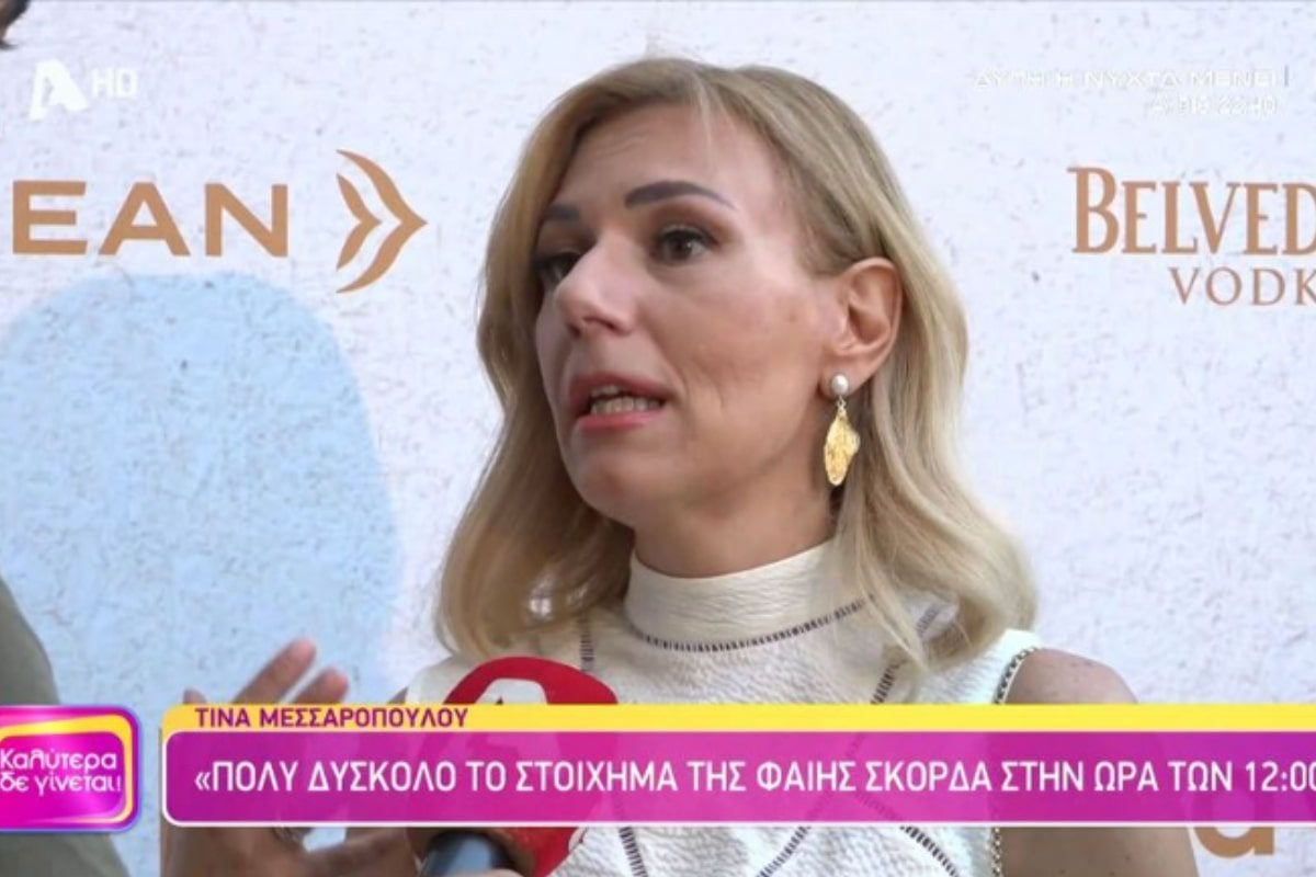 Η Τίνα Μεσσαροπούλου μίλησε σε δημοσιογράφο της εκπομπής «Καλύτερα δε γίνεται», για τον Κώστα Τσουρό, για τον Κωνσταντίνο Βασάλο, αλλά και για την αλλαγή ώρας της εκπομπής της Φαίης Σκορδάς