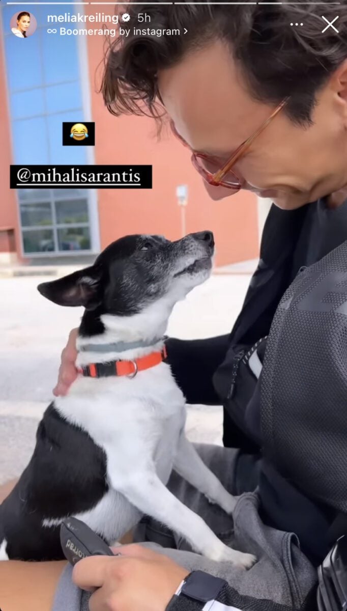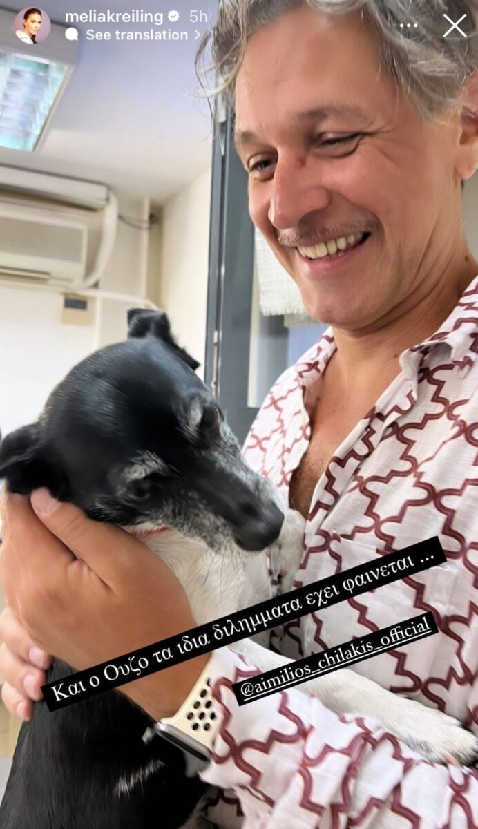 Εδώ, όμως, δεν βρίσκεται μόνη, αλλά με την καλύτερη συντροφιά: του όμορφου, τετράποδου φίλου της, του Ούζο, ο οποίος τη… συνοδεύει συχνά στα γυρίσματα. Μάλιστα, η ηθοποιός μοιράστηκε μέσα από τον προσωπικό της λογαριασμό στο Instagram δύο αστεία στιγμιότυπα με τους συμπρωταγωνιστές της Αιμίλιο Χειλάκη και Μιχάλη Σαράντη, γράφοντας: «Και ο Ούζο τα ίδια διλήμματα έχει φαίνεται…».
