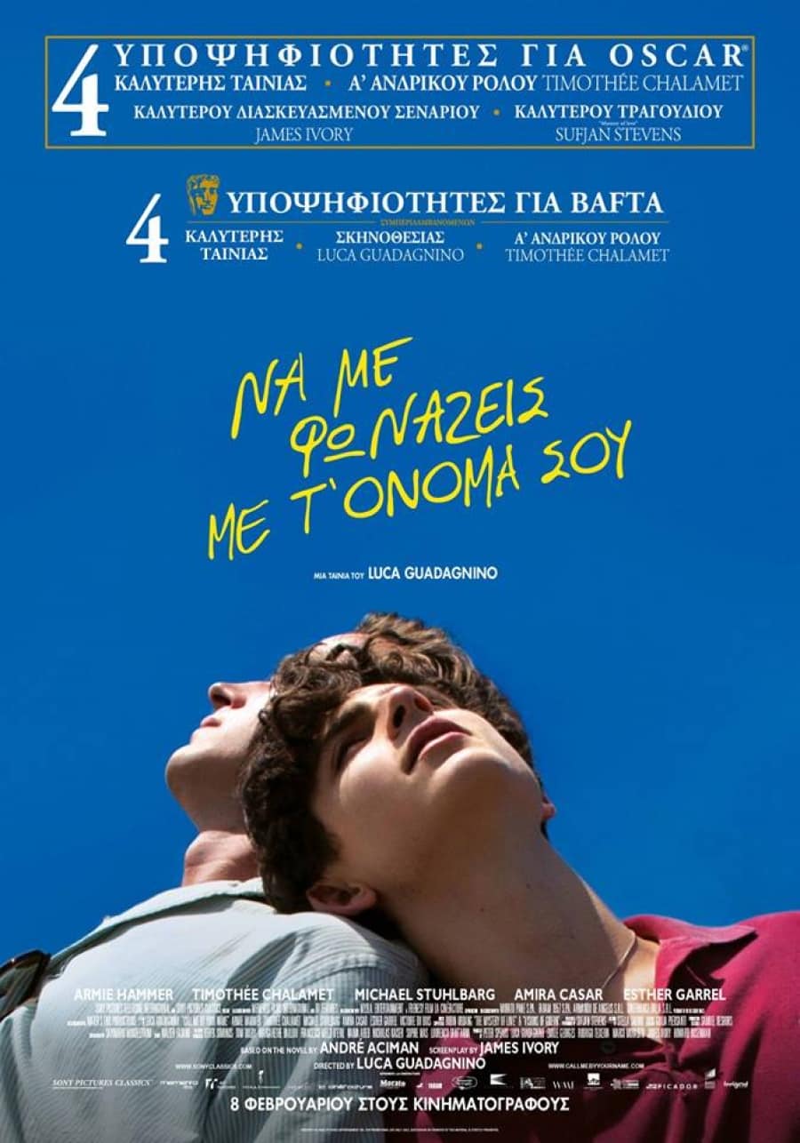 Μαζί μας η υποψήφια για 4 Oscar & 3 Χρυσές Σφαίρες Κοινωνική ταινία, «Να με Φωνάζεις με τ’ Όνομά σου» του Λούκα Γκουαντανίνο (Είμαι ο Έρωτας, Κάτω από τον Ήλιο) με τους Άρμι Χάμερ, Τιμοτέ Σαλαμέ & Μάικλ Στούλμπαργκ…