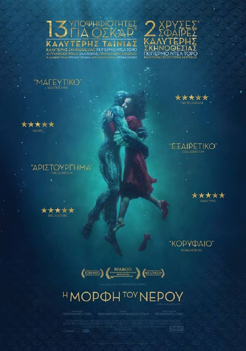 Έρχεται η υποψήφια για 13Oscar& βραβευμένη με 2 Χρυσές Σφαίρεςταινία Φαντασίας«Η Μορφή του Νερού» του Γκιγιέρμο Ντελ Τόρο (Κρόνος, Mimic, Στη Ράχη του Διαβόλου, Blade II, Hellboy: Ο Ήρωας της Κόλασης, Ο Λαβύρινθος του Πάνα, Hellboy II: Η Χρυσή Στρατιά, PacificRim, Πορφυρός Λόφος) με τους Σάλι Χόκινς, Μάικλ Σάνον, ΡίτσαρντΤζένκινς, Νταγκ Τζόουνς, Μάικλ Στούλμπαργκ&ΟκτάβιαΣπένσερ…