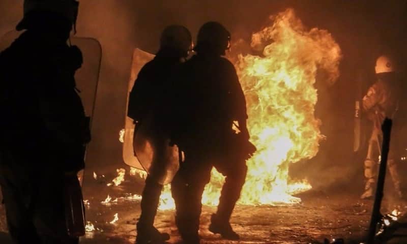 Επιθέσεις με βόμβες μολότοφ εναντίον διμοιρίας των ΜΑΤ σημειώθηκαν από νεαρά άτομα, αργά το βράδυ, στη συμβολή των οδών Πατησίων και Τοσίτσα. Από τις επιθέσεις δεν υπήρξε κάποιος τραυματισμός, ενώ η αστυνομία δεν προχώρησε σε προσαγωγές.