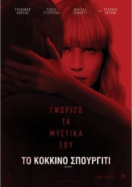 Κοντά μας ηΚατασκοπευτική Περιπέτεια «Το Κόκκινο Σπουργίτι» τουΦράνσις Λόρενς (Constantine, Ζωντανός Θρύλος, Νερό για Ελέφαντες, The HungerGames: Φωτιά, The HungerGames: Επανάσταση-Μέρος 1& 2) με τους Τζένιφερ Λόρενς, ΤζόελΈτζερτον, ΜατίαςΣένερτς, ΤζέρεμιΆιρονς, Μαίρη-ΛουίζΠάρκερ& Σάρλοτ Ράμπλινγκ…