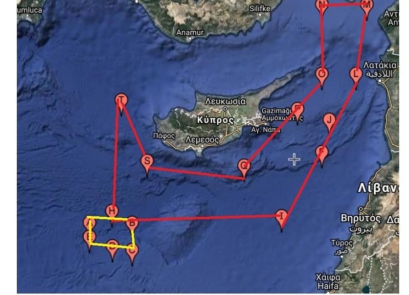 Όπως αποκαλύπτει η εφημερίδα Φιλελεύθερος της Κύπρου, η νέα NAVTEX 0369/18 της Τουρκίας δεσμεύει αυτήν τη μεγάλη περιοχή για διενέργεια άσκησης πολεμικού σκάφους με τη ρυμούλκηση υποβρύχιας συσκευής από τις 11- 18 Μαρτίου και από τις 22-29 Μαρτίου.