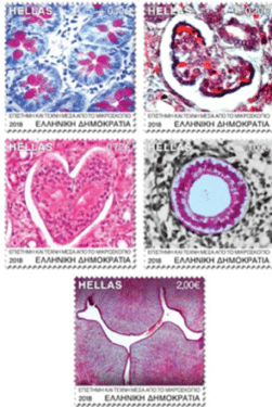 Μια πρωτοποριακή Αναμνηστική Σειρά γραμματοσήμων με τίτλο «Επιστήμη και Τέχνη μέσα από το μικροσκόπιο», εκδίδουν και κυκλοφορούν τα Ελληνικά Ταχυδρομεία τη Δευτέρα 19 Μαρτίου 2018. Για πρώτη φορά, αποτυπώνονται σε γραμματόσημα κύτταρα, που σχηματίζουν εικόνες και παραστάσεις αντίστοιχης ομορφιάς με αυτή που συναντά κανείς σε πίνακες ζωγραφικής.