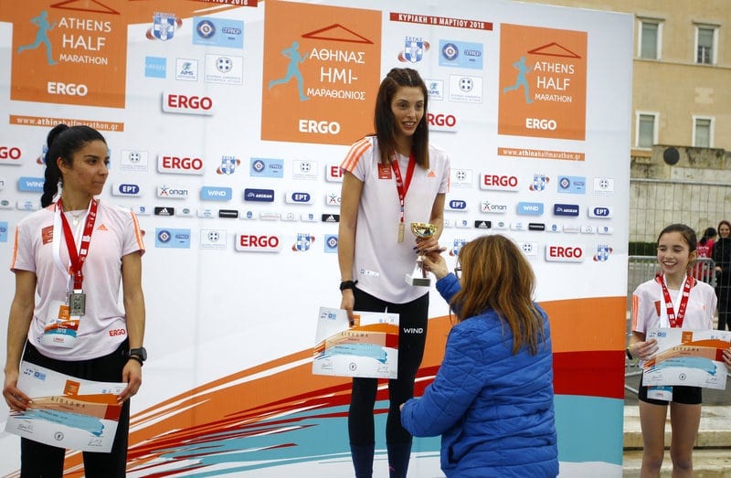 Είναι μόλις 12 ετών και έκλεψε τις εντυπώσεις ανάμεσα σε χιλιάδες κόσμου. Πρόκεται για την Γλυκερία Σκάρκου που κατέκτησε την 3η θέση στα 5 χιλιόμετρα του Ημιμαραθωνίου της Αθήνας. «Ηταν πολύ ωραίος αγώνας, παρότι ο καιρός δεν ήταν καλός. Δεν το περίμενα ότι θα βγω τρίτη και χάρηκα πολύ.
