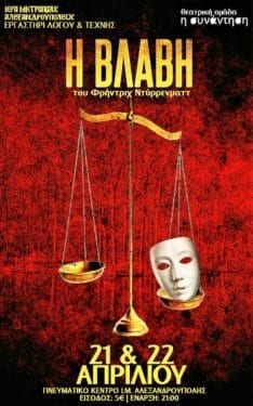 Το «Εργαστήρι Λόγου και Τέχνης» και η Θεατρική Ομάδα «Η Συνάντηση» της Ιεράς Μητροπόλεως Αλεξανδρουπόλεως θα παρουσιάσουν την θεατρική παράσταση «Η βλάβη» του διάσημου Ελβετού συγγραφέα Φρήντριχ Ντύρρενματτ.