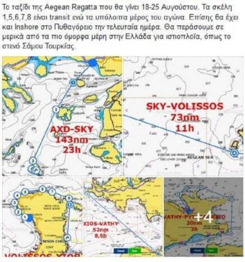 Η συμμετοχή σε ένα αγώνα σαν την Aegean Regatta μακρυά από την Αλεξανδρούπολη, απαιτεί έγκαιρη προετοιμασία. Στον ΝΟΑ αυτή έχει ήδη ξεκινήσει με την αρχική χάραξη σε ηλεκτρονικούς χάρτες ώστε να ενημερωθεί το πλήρωμα μας έγκαιρα. Είναι το πρώτο στάδιο από τα πολλά που θα ακολουθήσουν για την ασφαλή διεξαγωγή αυτού του μεγάλου πλου διάρκειας 10 ημερών .