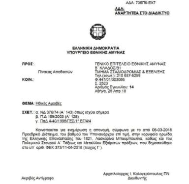 Την απόφαση ενέκρινε ο υπουργός Άμυνας ενώ την σχετική εγκύκλιο που εξέδωσε το Υπουργείο Εθνικής Άμυνας υπογράφει ο Αρχιπλοίαρχος Ιωάννης Καλογερόπουλος ΠΝ.