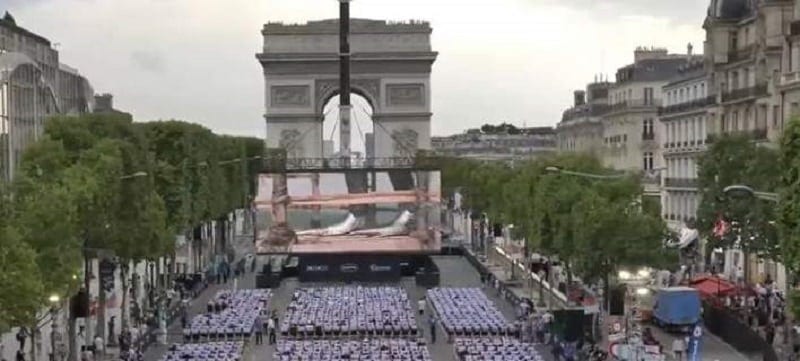 Για την προβολή της ταινίας, είχαν τοποθετηθεί σεζλόνγκ σε όλο το πλάτος της λεωφόρου. Οι παράδρομοι της Σανζ-Ελιζέ ήταν διαθέσιμοι στο ευρύ κοινό καθώς και από εκεί η ορατότητα ήταν τέλεια.