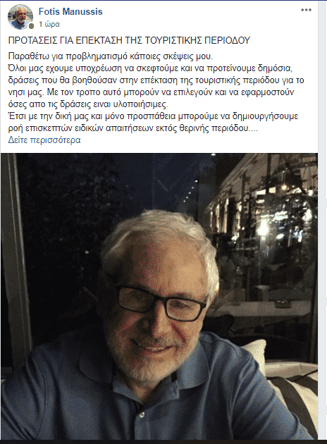 Όλοι μας έχουμε υποχρέωση να σκεφτούμε και να προτείνουμε δημόσια, δράσεις που θα βοηθούσαν στην επέκταση της τουριστικής περιόδου για το νησί μας. Με τον τρόπο αυτό μπορούν να επιλεγούν και να εφαρμοστούν όσες απο τις δράσεις ειναι υλοποιήσιμες.
