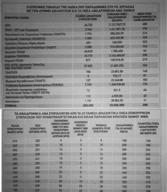 Τα αναδρομικά αφορούν συνταξιούχους του Δημοσίου (πρώην ΤΕΑΔΥ), των ΔΕΚΟ (ΔΕΗ, ΟΤΕ, ΕΛΤΑ), της Αγροτικής Τράπεζας (πρώην ΕΛΕΜ), των ασφαλιστικών ταμείων και οργανισμών (πρώην ΤΕΑΠΟΚΑ), του Εμπορικού Ναυτικού (ΤΕΑΠΙΕΝ), χημικούς (ΤΕΑΧ), της Ελληνικής Ραδιοφωνίας – Τηλεόρασης (ΤΕΑΠΕΡΤ), όπως και διάφορες άλλες μεμονωμένες περιπτώσεις.