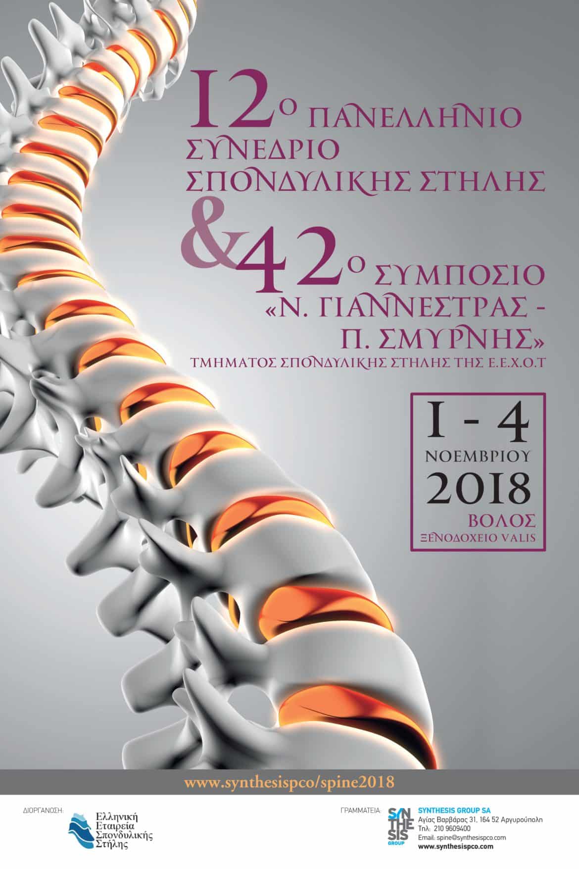 12ο Πανελλήνιο Συνέδριο Σπονδυλικής Στήλης & 42ο Συμπόσιο «Ν. Γιαννέστρας – Π. Σμύρνης»