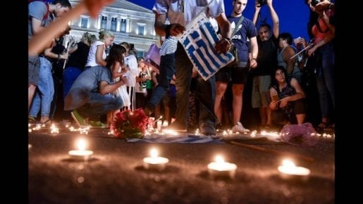 Σιωπηλή συγκέντρωση πραγματοποιήθηκε στο Σύνταγμα το βράδυ της Δευτέρας προς τιμήν της μνήμης των θυμάτων της καταστροφικής πυρκαγιάς στην ανατολική Αττική.