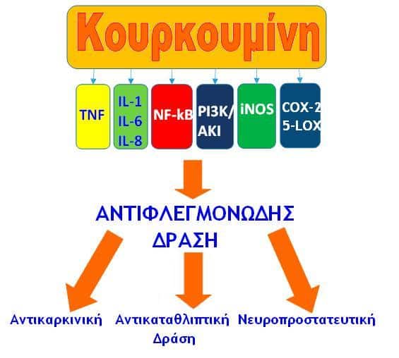 Γενικά, ο κουρκουμάς παίζει ρόλο-κλειδί στον έλεγχο της φλεγμονής, επειδή η κουρκουμίνη είναι μια βιοδραστική ουσία που την καταπολεμά σε μοριακό επίπεδο.