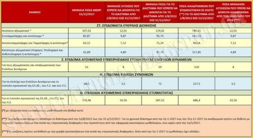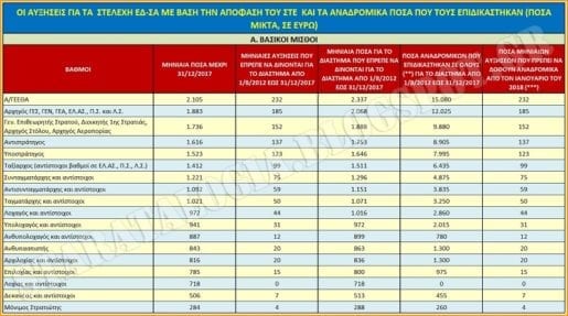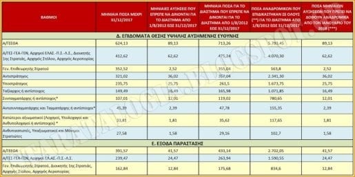 Οι στρατιωτικοί, οι αστυνομικοί, οι λιμενικοί και οι πυροσβέστες δικαιώθηκαν πλήρως και έχουν ήδη λάβει σε μηνιαίες δόσεις τα αναδρομικά που αντιστοιχούν στο 50% των περικοπών που επιβλήθηκαν από την 1η-8-2012 με το νόμο 4093/2013. Επιπλέον, το Δημόσιο οφείλει να τους καταβάλει ακαθάριστα ποσά αναδρομικών από 643,60 έως και 27.902,55 ευρώ, τα οποία αντιστοιχούν στο υπόλοιπο 50% των περικοπών σε βασικούς μισθούς και επιδόματα που τους επιβλήθηκαν την περίοδο από την 1η-8-2012 έως την 31η-12-2017 με το ν. 4093/2013. Παράλληλα δικαιούνται πλέον και προσαύξησης των «προσωπικών διαφορών» που λαμβάνουν κάθε μήνα από τον Ιανουάριο του τρέχοντος έτους (λόγω εφαρμογής νέου μισθολογίου αναδρομικά από την 1η-1-2017), κατά τα ακαθάριστα ποσά μηνιαίων αυξήσεων που προκύπτουν, για την περίοδο από 1-8-2012 έως 31-12-2017, εξαιτίας της επιβεβλημένης πλήρους αποκατάστασης των αποδοχών τους στα επίπεδα του Ιουλίου του 2012.