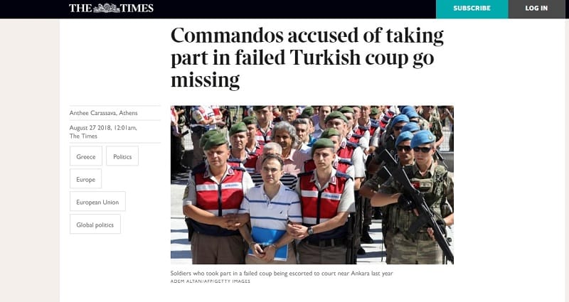 Δύο από τους Τούρκους αξιωματούχους που είχαν ζητήσει άσυλο στην Ελλάδα, λόγω της υποτιθέμενης εμπλοκής τους στο πραξικόπημα κατά του Τούρκου προέδρου, Ρετζέπ Ταγίπ Ερντογάν, αγνοούνται, σύμφωνα με τη δικηγόρο τους.