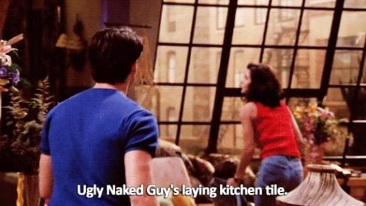 Οι χαρακτήρες παρατηρούσαν με τις ώρες τον γυμνό γείτονά τους από το παράθυρο του διαμερίσματος της Μόνικα Γκέλερ.