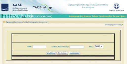 Τα τέλη κυκλοφορίας του 2019 αναρτήθηκαν στην ιστοσελίδα της Ανεξάρτητης Αρχής Δημοσίων Εσόδων (ΑΑΔΕ), aade.gr.