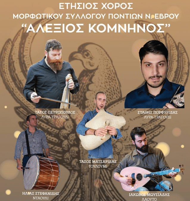 Ο Μορφωτικός Σύλλογος Ποντίων Ν. Έβρου “Αλέξιος Κομνηνός” σας προσκαλεί στον ετήσιο χορό που θα πραγματοποιηθεί το Σάββατο 9 Φεβρουαρίου 2019 & ώρα έναρξης 21:00μ.μ. στην αίθουσα εκδηλώσεων “Μέγαρο” για να περάσουμε μια αξέχαστη βραδιά με την παρουσία των χορευτικών τμημάτων του Συλλόγου μας και κορυφαίων καταξιωμένων Ποντίων καλλιτεχνών.