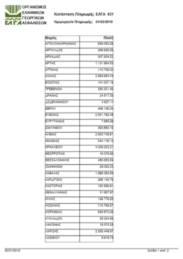 Σήμερα, Παρασκευή 1η Φεβρουαρίου θα καταβληθεί το συνολικό ποσό των 26.008.767,87 ευρώ από τον ΕΛΓΑ, στους λογαριασμούς 18.848 δικαιούχων αγροτών και κτηνοτρόφων