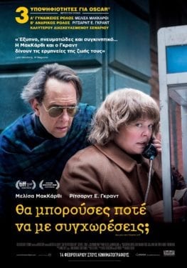 Έρχεται η υποψήφια για 3 Oscar& 2 Χρυσές Σφαίρες Βιογραφική ταινία, «Θα Μπορούσες Ποτέ Να Με Συγχωρέσεις;» της ΜάριελΧέλερ(Το Ημερολόγιο μιας Έφηβης) με τους Μελίσα Μακ Κάρθι, Ρίτσαρντ Ε. Γκραντ, Ντόλυ Γουέλς& Μπεν Φάλκον…