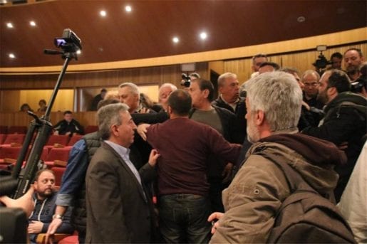 Τελικά οι σύνεδροι πιάστηκαν στα χέρια με σπρωξίματα και φωνές.