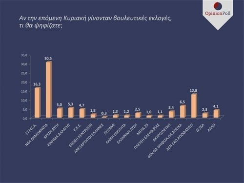 Opinion Poll: Προβάδισμα 17 μονάδων
