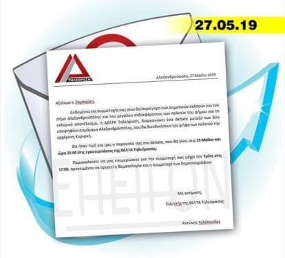 Η Δέλτα τηλεόραση, δημοσιοποιεί τις επιστολές που έστειλε στον κ. Ζαμπούκη, για συμμετέχει στο debate με τον κ. Λαμπάκη