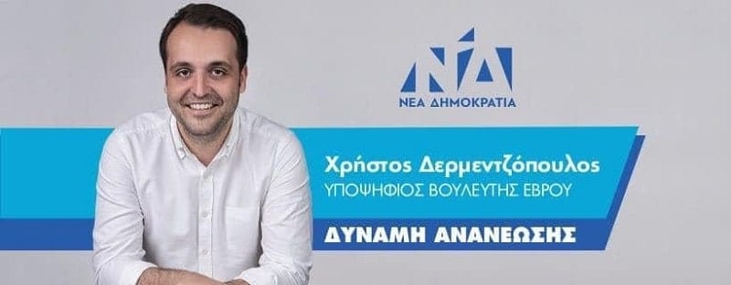 Ο υποψήφιος βουλευτής Νομού Έβρου της Νέας Δημοκρατίας Χρήστος Δερμεντζόπουλος σας προσκαλεί στην ανοιχτή πολιτική εκδήλωση – συζήτηση την Τετάρτη 26 Ιουνίου 2019 στις 19.00 το απόγευμα στην Αλεξανδρούπολη.