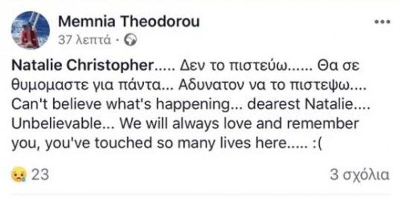 Συγκλονισμένοι είναι και οι φίλοι της άτυχης Νάταλι