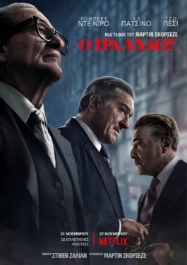 Μαζί μας σε Πανελλήνια Πρεμιέρα η πολυαναμενόμενη Κοινωνική Περιπέτεια, «Ο Ιρλανδός» του Μάρτιν Σκορσέζε (Ο Ταξιτζής, Οργισμένο Είδωλο, Ο Τελευταίος Πειρασμός, Τα Καλά Παιδιά, Τα Χρόνια της Αθωότητας, Οι Συμμορίες της Νέας Υόρκης, Ιπτάμενος Κροίσος, Ο Πληροφοριοδότης, Hugo, Ο Λύκος της Wall Street, Σιωπή) με τους Ρόμπερτ Ντε Νίρο, Αλ Πατσίνο, Τζο Πέσι, Χάρβεϊ Καϊτέλ, Άννα Πακουίν, Μπόμπι Καναβάλε, Ρέι Ρομάνο & Τζέσε Πλέμονς…