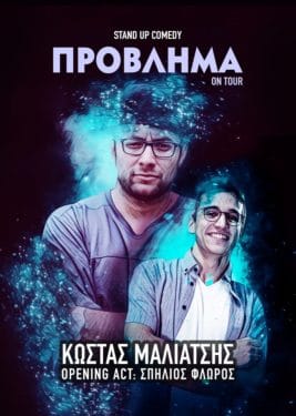 Υπόθεση: Ο αγαπημένος κωμικός επιστρέφει με το καλύτερό του σόου μέχρι στιγμής! Όταν μιλάει κανείς για τον Κώστα Μαλιάτση οι συστάσεις είναι περιττές. Η πορεία του σε θεατρικές σκηνές σε όλη την Ελλάδα τα τελευταία χρόνια συνοδεύεται από πανηγυρικά sold out, δείγμα της αγάπης που του δείχνει ο κόσμος και των διαπιστευτηρίων του απέναντι στη πορεία και τη συνέπεια του έργου του. Η φετινή χρονιά μετά την… κρίση των τριάντα που τον σημάδεψε, συνοδεύεται από μία νέα παράσταση – Πρόβλημα, όνομα και πράμα. Από τα κείμενά του περνούν, όλες εκείνες οι μικρές φοβίες, οι προβληματισμοί αλλά και οι συνειρμοί που κάνει το μυαλό του γνωστού κωμικού, που στην διήγησή τους δεν μπορείς παρά να ξεσπάσεις σε δυνατά γέλια. Κάθε προσπάθεια να φύγεις… αγέλαστος από το δημιουργικό του παραλήρημα είναι περιττή. Μαζί του, ένας από τους πιο ταλαντούχους κωμικούς της νέας γενιάς, ο Σπήλιος Φλώρος, ο οποίος κάνει τα πρώτα του χιλιόμετρα στην ελληνική περιφέρεια για να μάθει τον κόσμο αλλά και να σκορπίσει τα χαμόγελα με τα ευφάνταστά του κείμενα. Σας περιμένουμε για να γίνετε μάρτυρες του πιο εκρηκτικού δίδυμου της φετινής χρονιάς.
