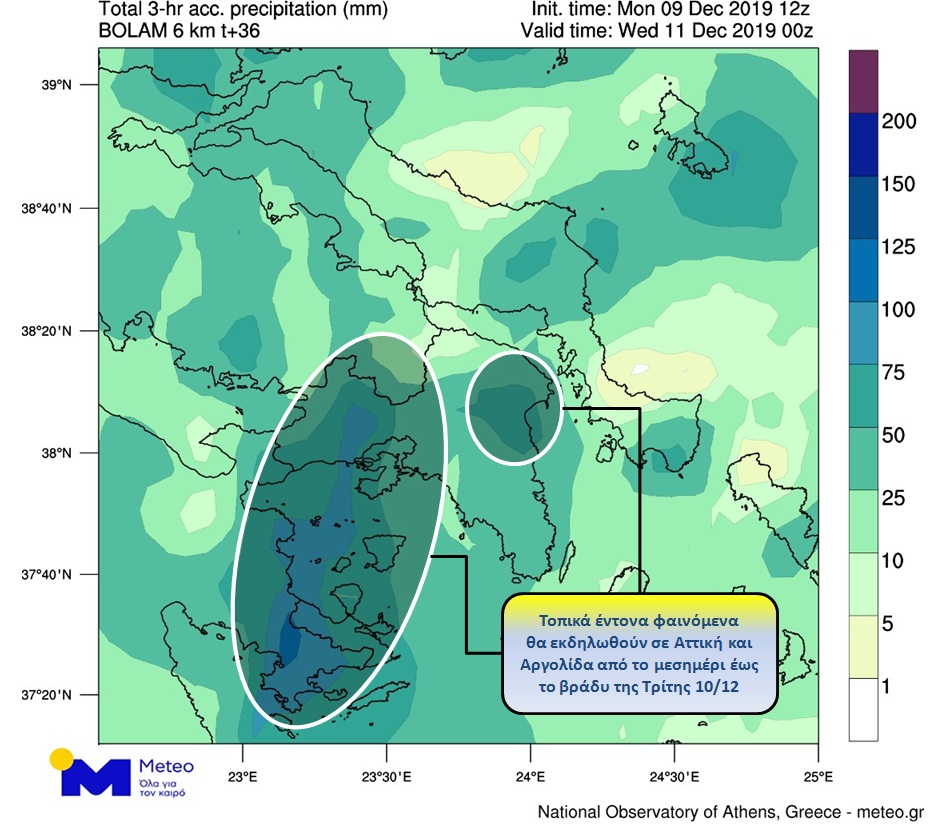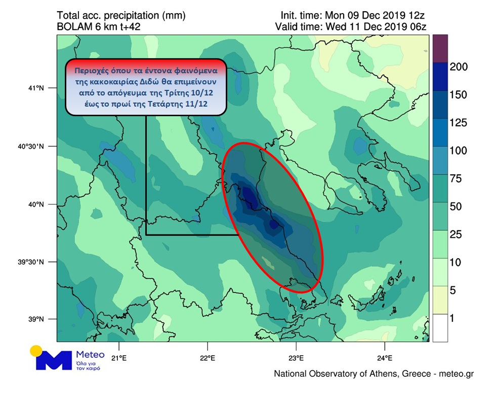 Οπως χαρακτηριστικά αναφέρουν, «ιδιαίτερη προσοχή θα πρέπει να δοθεί από τις απογευματινές ώρες της Τρίτης έως και τις πρωινές ώρες της Τετάρτης κυρίως στα παράκτια τμήματα της Ανατολικής Θεσσαλίας, της Πιερίας και της Ημαθίας όπου λόγω του πολύ ενισχυμένου ανατολικού ρεύματος που θα πνέει στο Βόρειο Αιγαίο με εντάσεις 8-9 μποφόρ, οι έντονες βροχοπτώσεις θα έχουν μεγάλη διάρκεια».