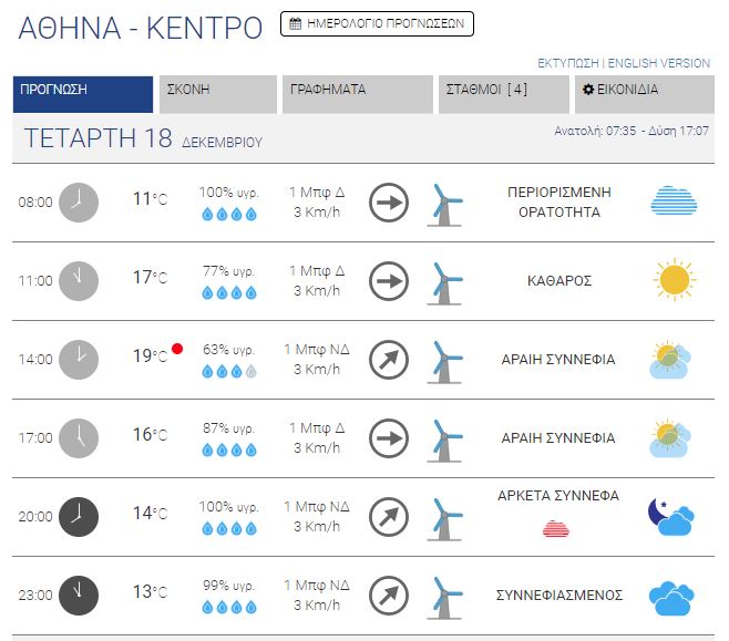 Καιρός: Γενικά αίθριος με λίγες τοπικές νεφώσεις. Η ορατότητα θα είναι κατά τόπους περιορισμένη και θα σχηματιστούν ομίχλες. Ανεμοι: Μεταβλητοί ασθενείς. Θερμοκρασία: Από 09 έως 15 βαθμούς Κελσίου.
