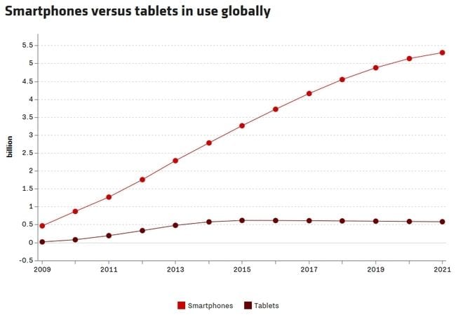 Τα smartphones είναι συχνά οι κύριες συσκευές που χρησιμοποιούν χρήστες για να συνδεθούν στο διαδίκτυο και ως αποτέλεσμα οι πωλήσεις των smartphones αυξάνονται ραγδαία. Η μεγαλύτερη οθόνη των smartphones επιτρέπει περισσότερες δραστηριότητες και υπονομεύει τη χρήση των τάμπλετ.