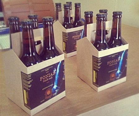 “ Ο καταρράκτης που είναι ο Φονιάς είναι ανάγλυφος όπως και η λέξη, καμία μπύρα στην Ελλάδα δεν έχει ανάγλυφη ετικέτα. Επίσης στην ετικέτα πάνω υπάρχει το σύστημα Braille για όσους έχουν πρόβλημα όρασης, με σκοπό να μπορούν αν διαβάσουν την μπύρα που θα πιουν. Αυτή την καινοτομία δεν την έχει καμία μπύρα στο μπουκάλι της. Όλη αυτή ετικέτα λοιπόν έχει τετραπλάσιο κόστος από μία απλή ετικέτα. Αυτά λοιπόν όλα τα πράγματα δεν είναι κάτι που κάποιος τα βάζει για να φτιάξει μια απλή μπύρα. Εμείς κάναμε κάτι σοβαρό, κάτι που έχει λεφτά για να το φτιάξεις. Παράλληλα το καπάκι του μπουκαλιού έχει μια επίστρωση από κάτω η οποία είναι ειδική για να απορροφά το οξυγόνο που είναι κενό στο μπουκάλι. Αυτό γιατί το οξυγόνο που υπάρχει κάνει κακό σε όλες τις μπύρες και το καπάκι αυτό έχει μια ειδική απορροφητική επίστρωση από κάτω που το απορροφά για να μην οξυγονώνεται η μπύρα. Η μπύρα Φονιάς λοιπόν έχει 8 μήνες διάρκεια ζωής”.