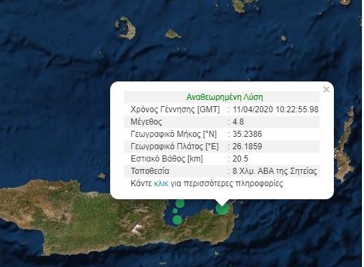 Όσο για το επίκεντρο, εντοπίζεται 8 χιλιόμετρα ανατολικά-βορειοανατολικά της Σητείας.