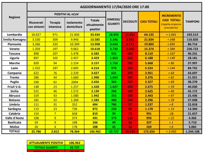 Πρώτη σε απώλειες και περιστατικά η επαρχία της Λομαβαρδίας,που είναι και το επίκεντρο της επιδημίας στη χώρα. Μέχρι σήμερα μετράει 11.851 νεκρούς ( το 50% του συνόλου των νεκρών στην Ιταλία) και 64.135 κρούσματα (το 30% του συνόλου των κρουσμάτων).