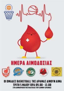 Οι ομάδες Basketball τησ Δράμας δίνουν αίμα Τρίτη 5 Μαίου 2020 Ωρα 09:00-13:00 στο Δημαρχείο της Πλατείας του Δήμου Δράμας.